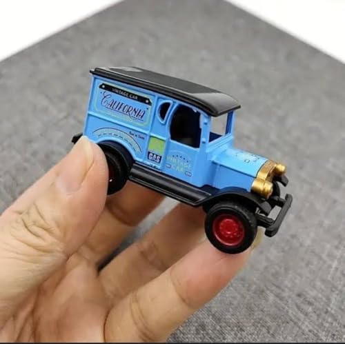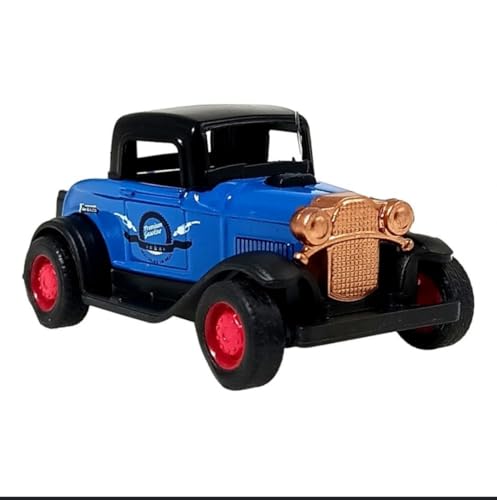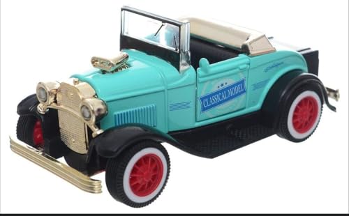 Generic - مجسم سيارة بتصميم كلاسيك عتيق، سيارة لعبة معدن مصبوبة، بلونين أزرق وتركواز وعجلات بلون أحمر مع لمسات ذهبي