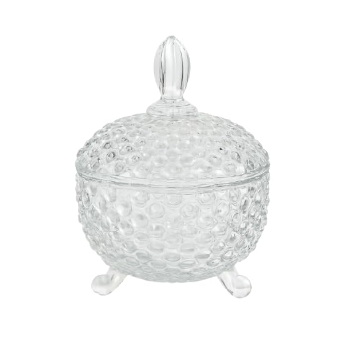 Generic - طبق حلوى زجاجي شفاف عتيق مع غطاء، وعاء تخزين مزخرف بمظهر كريستالي، تصميم باقدام ونمط هونيل