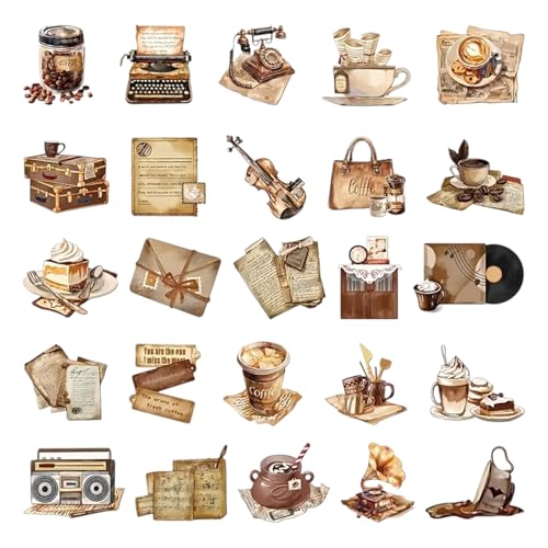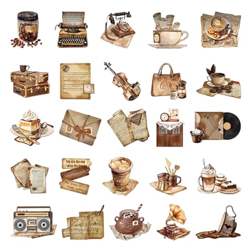 Generic - مجموعة ملصقات مزخرفة بنمط القهوة العتيقة، 50 قطعة، تصميم جمالي شفاف للجوال والمذكرات والنوت بوك