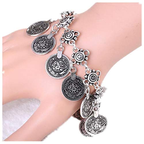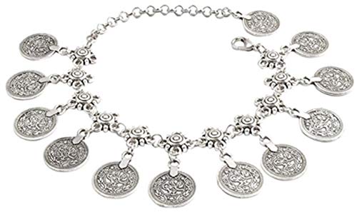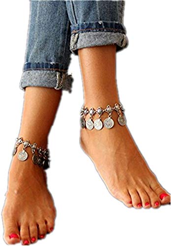 Generic - خمر عملة اللؤلؤ خلخال بوهو العتيقة الخرز الفضي عملة اللؤلؤ سلسلة القدم شاطئ المجوهرات -ST0178، للجنسين