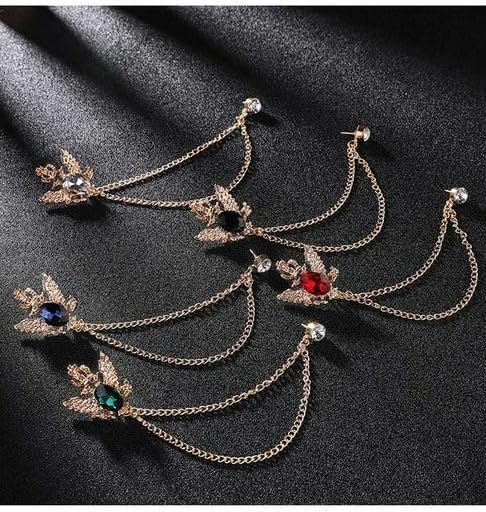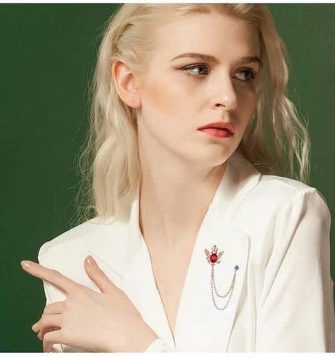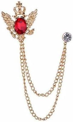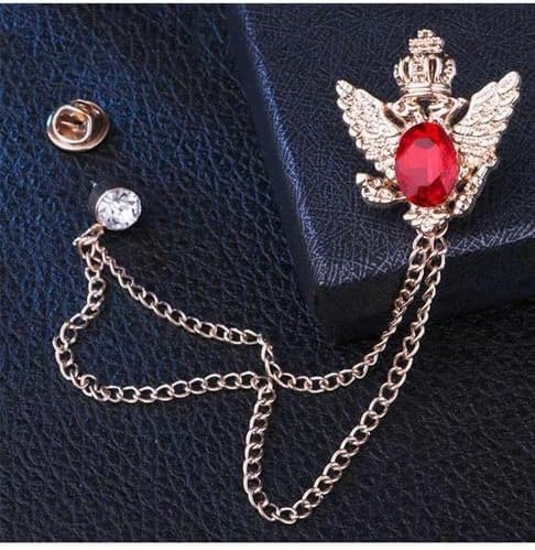 GQ - دبوس بروش بسلسلة طويلة من الأحجار الكريمة على شكل تاج عتيق للرجال والنساء، أكسسوارات بدلة للرجال