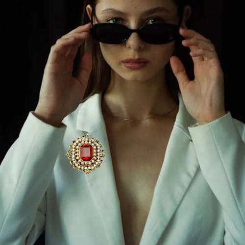 GYRMMUE - دبوس بروش كلاسيكي مرصع باللؤلؤ الكريستالي للنساء، بروش مستطيل الشكل مرصع باحجار الراين، بروش بوهو فيكتوري، دبوس طية صدر السترة لحفلات الزفاف والكريسماس والمهرجانات، مجوهرات زينة