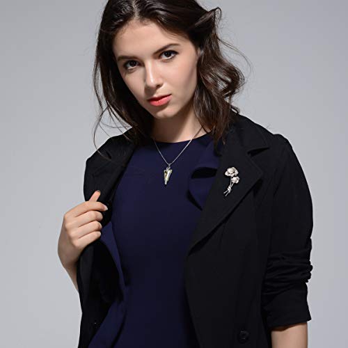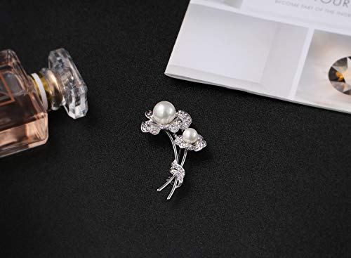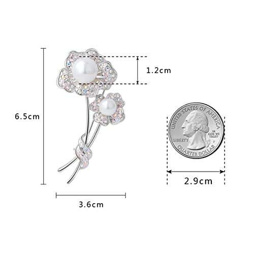 SUE'S SECRET - بروش كلاسيكي مميز مرصع باللؤلؤ والكريستال بلون فضي يمكن تقديمه كهدية للامهات والسيدات بحفلات الزفاف واعياد الميلاد, زجاج, كريستال