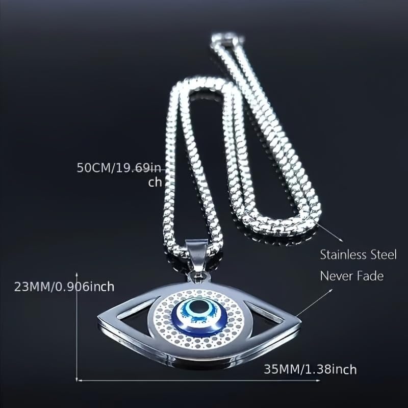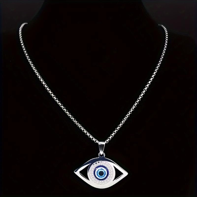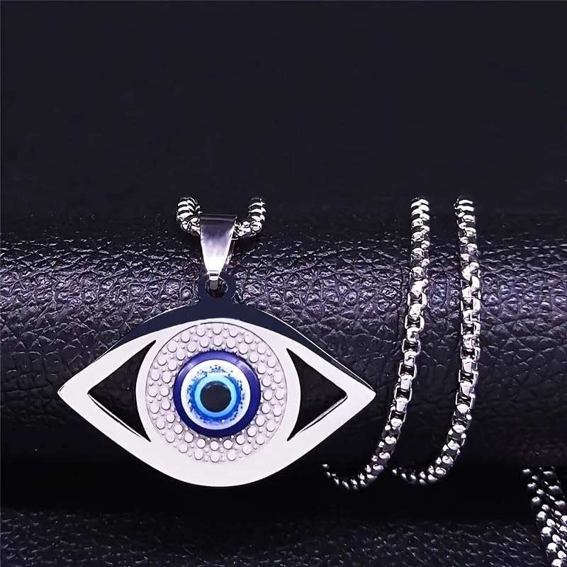 Generic - عقد بقلادة عين الحسد العتيقة من الستانلس ستيل مع زخرفة عين انيقة - مجوهرات حرفية لا تتأثر بمرور الزمن