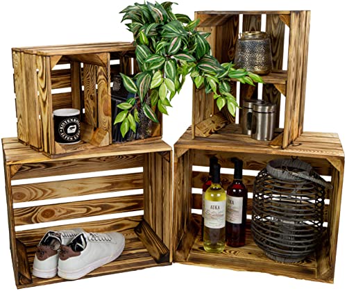 Kistenkolli Altes Land - كاسيت كلاسيكي مشتعل 50 × 40 × 29 سم/40 × 30 × 25 سم لتزيين المنزل بتصميم فاكهة او نبيذ او يمكنك تركيبه بنفسك (مجموعة من 4 قطع، تصميم افقي)