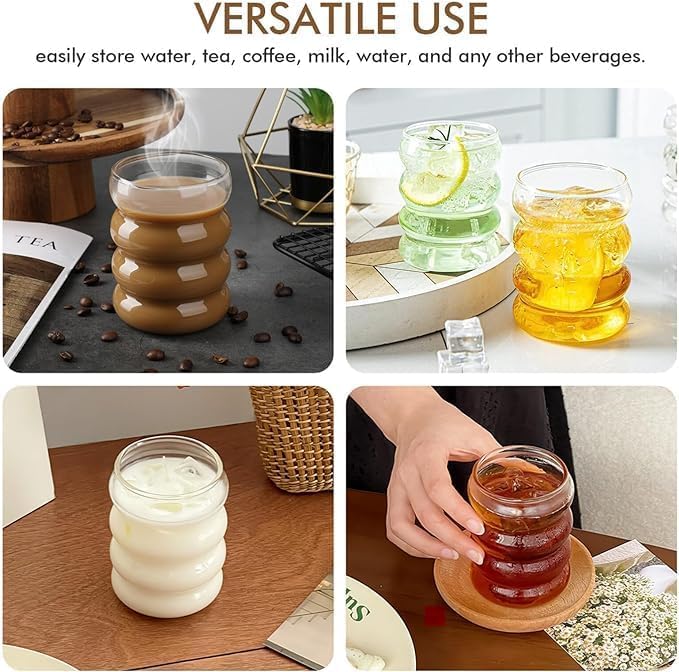 - مجموعة أكواب زجاجية بتصميم كلاسيكي، أكواب زجاجية بتصميم فقاعات شفافة