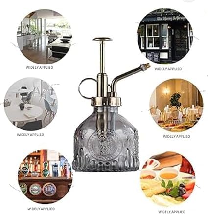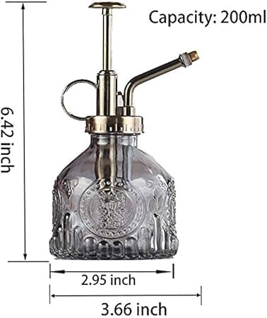 - السعة: زجاجة رش ماء زجاجية بسعة 200 مل بتصميم زخرفي مستوحى من الطراز العتيق، مثالية لرش رذاذ خفيف على النباتات الداخلية.