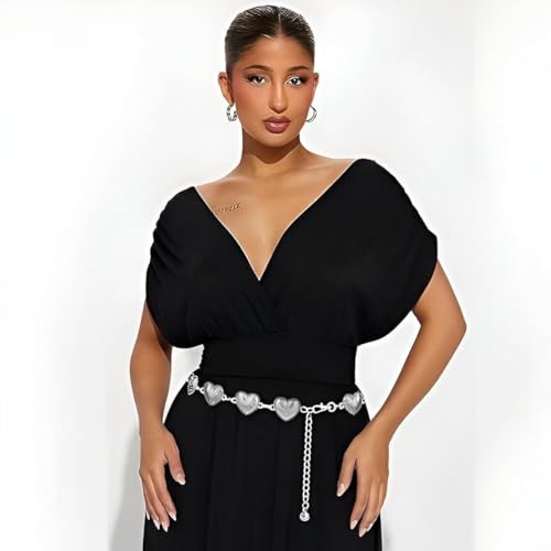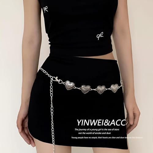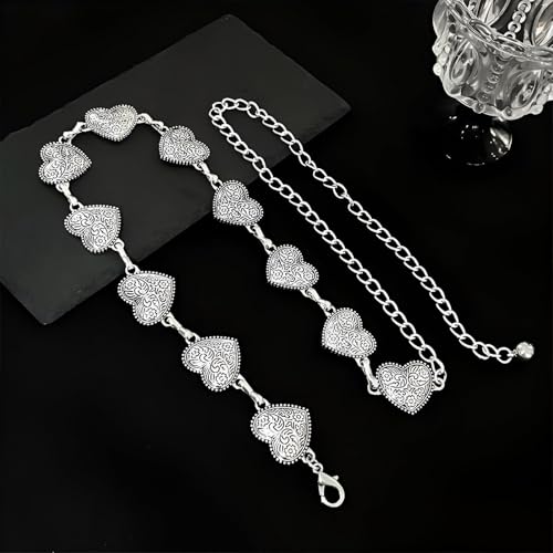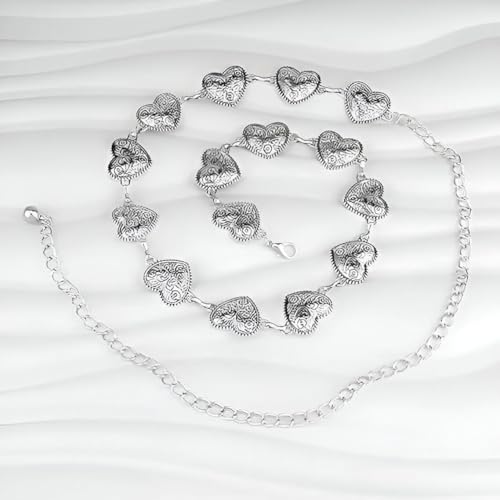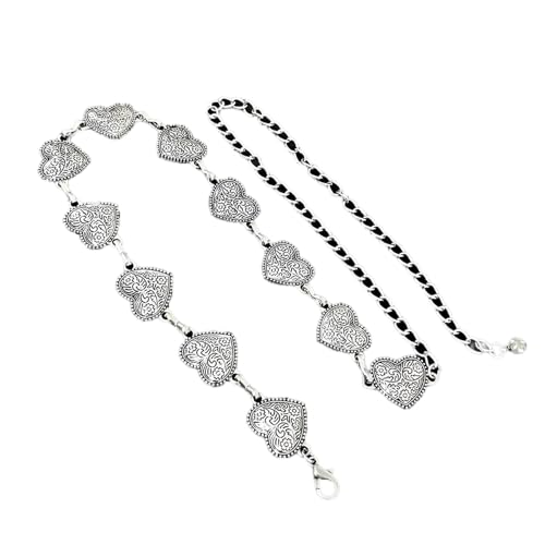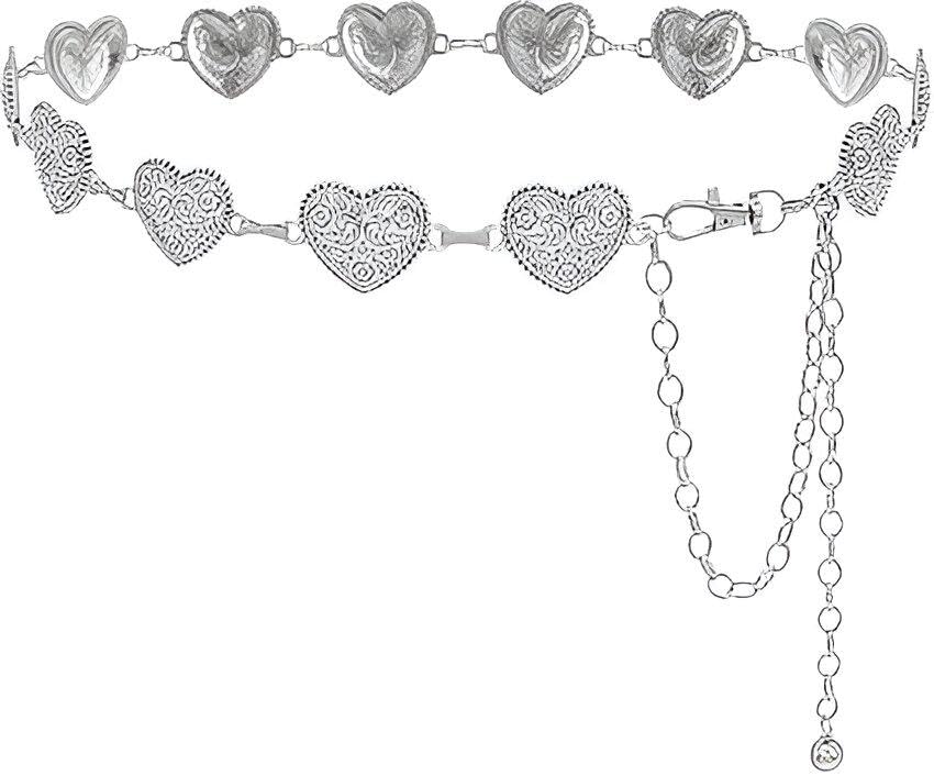 Generic - حزام فينتاج على شكل قلب - سلسلة معدنية مزخرفة بطول وامتداد قابلين للتعديل، لون فضي وذهبي انيق لمحبي الموضة