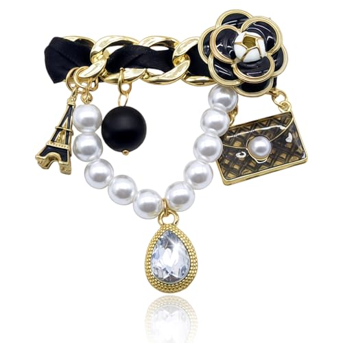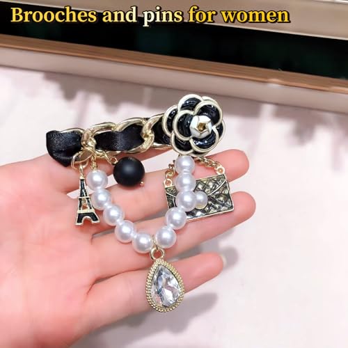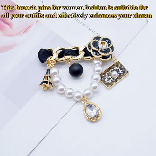 KASTANNY - بروش كلاسيكي مستوحى من اللؤلؤ ودلاية للنساء - بروش كبير عصري مع لمسات من الزهور واللؤلؤ، مناسب لأي مناسبة