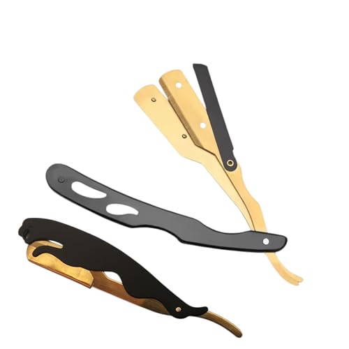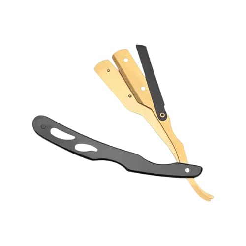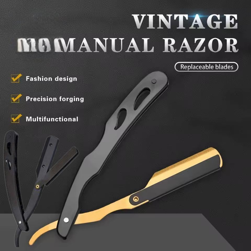 Generic - ماكينة حلاقة يدوية بنمط عتيق وهيكل من فولاذ مقاوم للصدأ، شفرات قابلة للاستبدال، أسود وذهبي