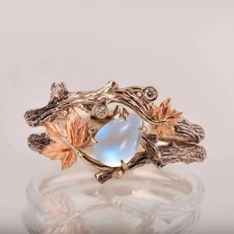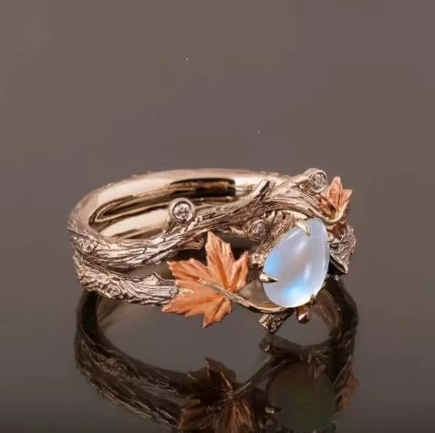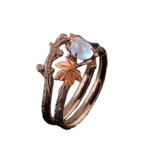 Generic - خاتم فينتاج من حجر القمر بتصميم اوراق القيقب، سوار غصين برونزي عتيق، هدية الذكرى السنوية