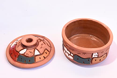 - طاجن فخار مزخرف بالغطاء - خام طمى اسوانى صلب يتحمل درجات الحراره المباشره وغير المباشره,شعله اوداخل الفرن