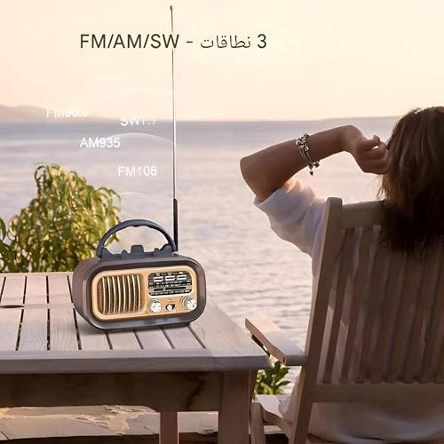 Generic - راديو فينتاج - مكبر صوت بلوتوث متين اف ام/ايه ام/اس دبليو مع شحن بالطاقة الشمسية، ام بي 3، بطاقة تي اف، صوت قوي، لون عشوائي