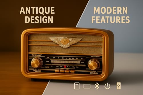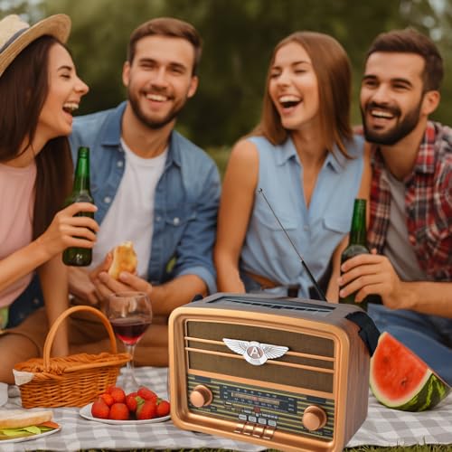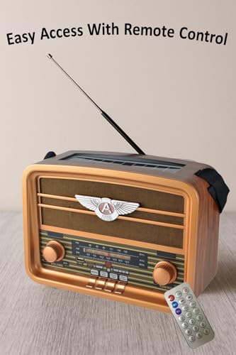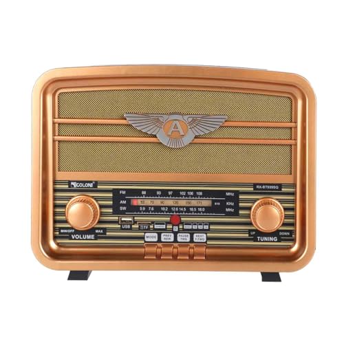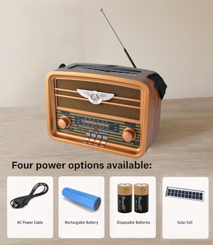 Generic - راديو فينتاج بميزات حديثة، بلوتوث، تي دبليو اس، مشغل TF/USB، راديو AM/FM/SW، بطارية قابلة لاعادة الشحن، يدعم طاقة التيار المتردد، طاقة شمسية وبطارية عادية (BT939)