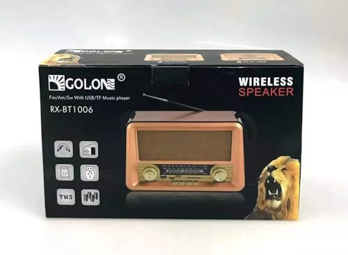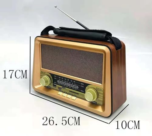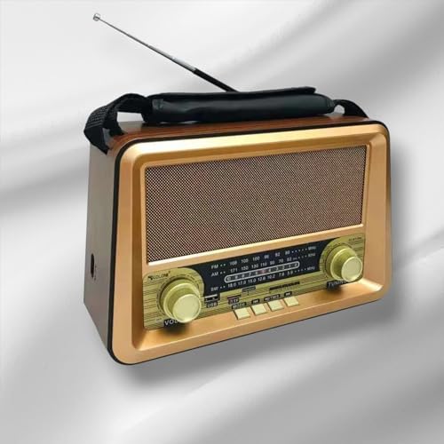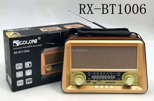 Generic - راديو كلاسيكي كلاسيكي مع بلوتوث، راديو محمول FM/AM/SW 3 نطاقات، مشغل موسيقى بطاقة USB/TF، بطارية قابلة لاعادة الشحن، موديل RX-BT1006، ذهبي