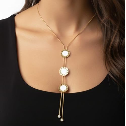 Generic - قلادة نسائية ذهبية بتصميم أرقام رومانية كلاسيكية - سلسلة فاخرة قابلة للتعديل بطلاء ذهبي عيار 18 - مجوهرات راقية للهدايا والمناسبات - تصميم عصري بلمسة تراثية