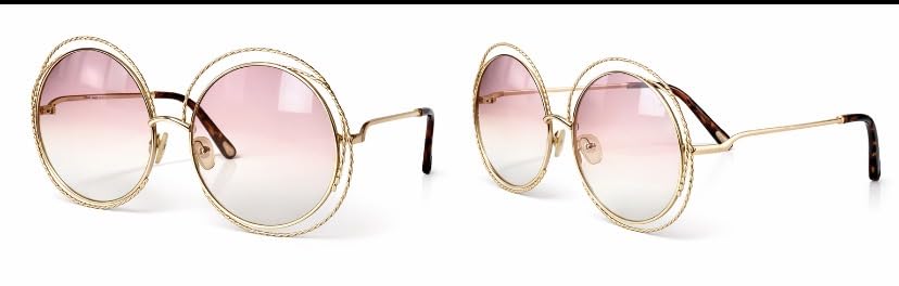 Generic - نظارة شمسية كلاسيكية دائرية معدنية ذهبية للنساء - عدسات بلون بينك متدرج، اطار مزين بحبل، حماية من الاشعة فوق البنفسجية 400