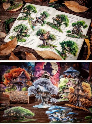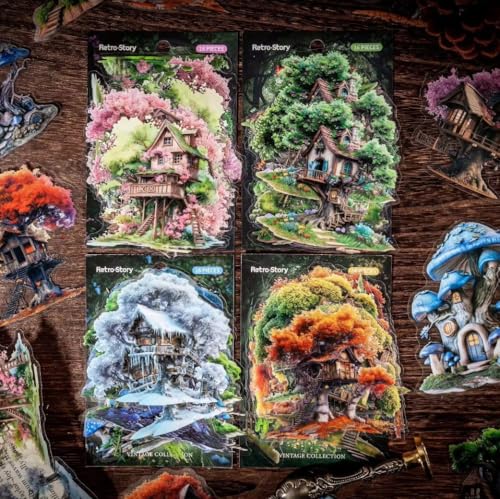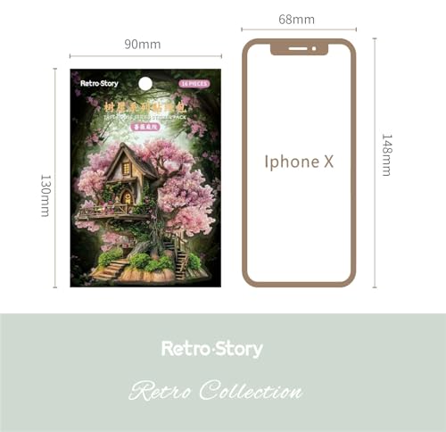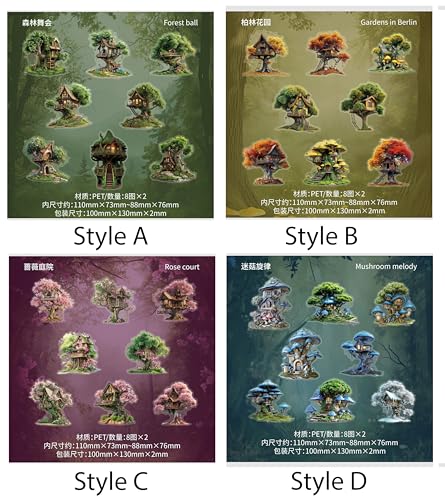 Generic - ملصقات سجل القصاصات بنمط عتيق بتصميم منزل شجرة للتخطيط اليومي والحرف اليدوية، مجموعة من 16 قطعة، نمط A