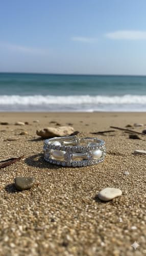 عام - سوار معصم عريض بتصميم قديم مرصع بالكريستال واللؤلؤ، إكسسوار سهرة فاخر باللون الفضي، مثالي لحفلات الزفاف والمناسبات الرسمية.