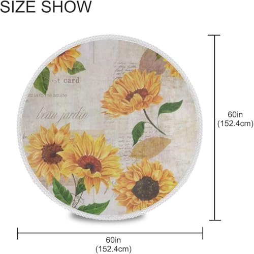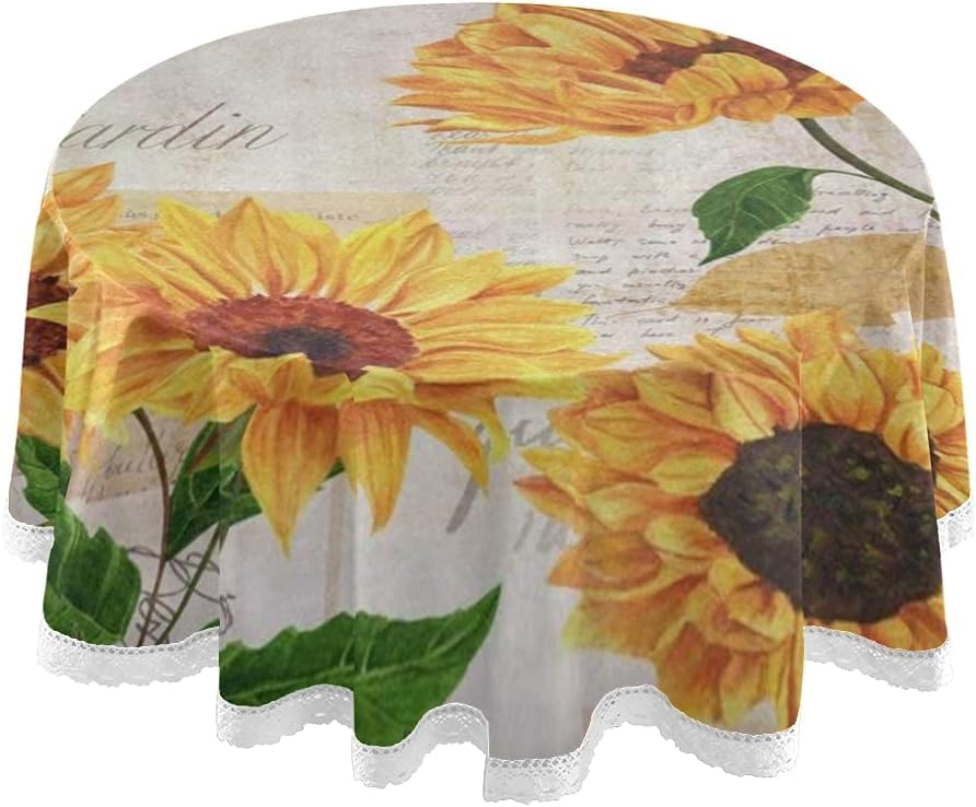Generic - مفرش طاولة دائري عتيق بتصميم زهرة عباد الشمس مقاس 1.52 متر، غطاء طاولة مقاوم للحرارة وقابل للغسل ومصنوع من البوليستر لديكور المطبخ والمنزل