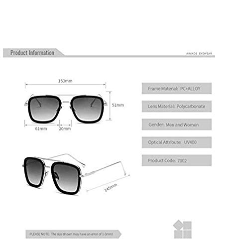 Other - نظارات شمس بتصميم كلاسيكي مربع بشنبر معدني للرجال والنساء بتصميم ايرون مان توني ستارك، نظارات شمس متدرجة، اسود