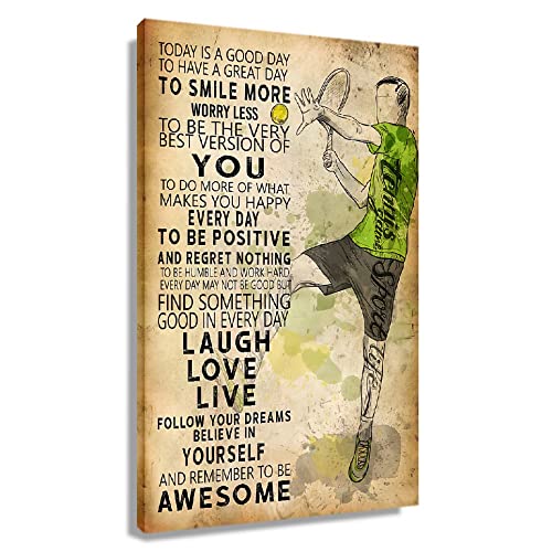 Busmko - لوحة فنية تجريدية قماشية بوستر تنس باقتباسات ملهمة لتزيين الحائط مؤطر عليه عبارة Today is a Good Day، صور تحفيزية لغرفة الأولاد، مقاس (40.6 سم × 91 سم)