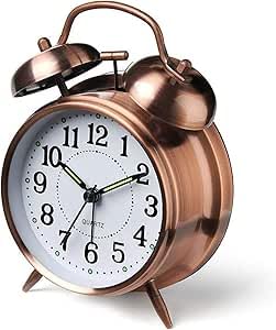 Generic - ساعة منبه بتصميم عتيق مزدوج الجرس ولمسة نهائية نحاسية ريترو أنيقة وعقارب مضيئة