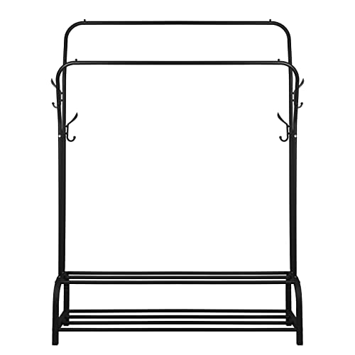 Vinteky - فينيتكي رف ملابس قائم بذاته بقضيب تعليق معدني معطف لتخزين الاحذية شماعة غرفة النوم قضيبين اسود .