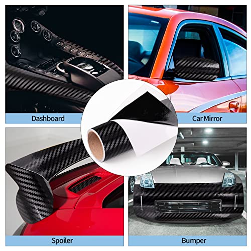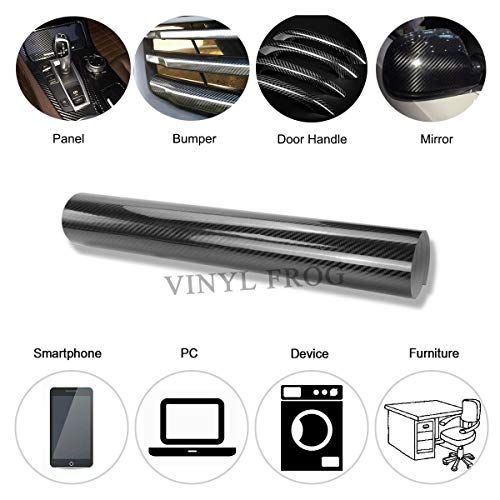 VINYL FROG - غلاف فينيل من فينيل فروج، خماسي الابعاد، الياف الكربون، لامع، بتركيبة ثلاثية الابعاد، خالي من فقاعات الهواء، لتزيين المركبات، ملصق فينيل يمكنك صنعه بنفسك، بلون اسود، مقاس 30 سم × 152 سم