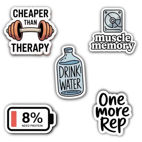 Artal - ملصقات تحفيزية لصالة الالعاب الرياضية - عبوة من 5 قطع، ملصقات فينيل مقاومة للماء ومتينة مقاس 6 × 6 سم للابتوب وزجاجات المياه ومعدات الصالة الرياضية مع اقتباسات اللياقة البدنية والتمارين الرياضية من