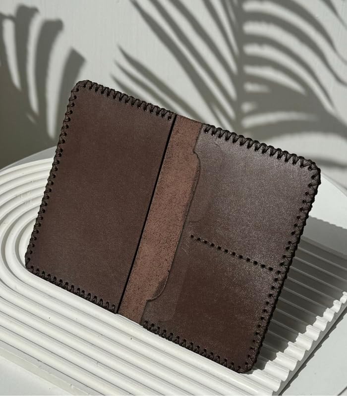 Generic - Viola محفظة جلدية بنية بخياطة يدوية، جلد طبيعي، تصميم نحيف، حامل بطاقات، نمط مزخرف (BROWN)