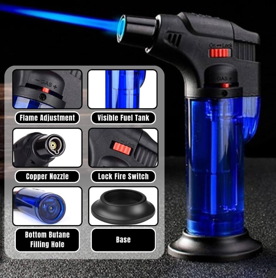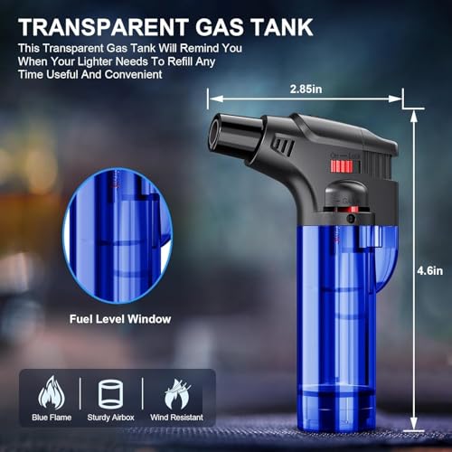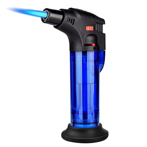 VIOVI - ولاعة غاز بوتان قابلة لإعادة الملء مع حامل ومناسبة للجيب، بشعلة نفاثة قابلة للتعديل ومقاومة للرياح ومثالية للمطبخ المنزلي والتخييم وإشعال الفحم والأنشطة الخارجية من فيوفي، (أزرق)