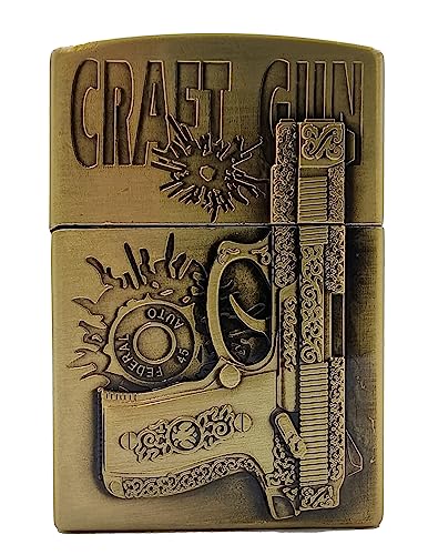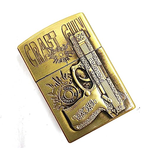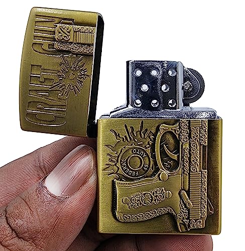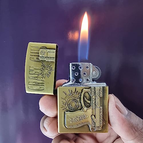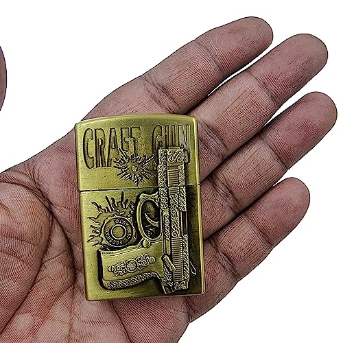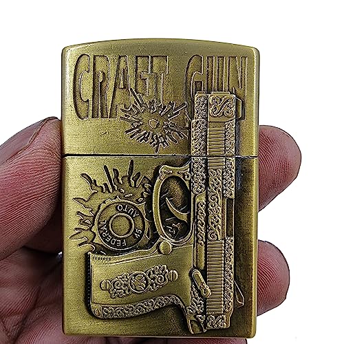 VIOVI - ولاعة جيب مع مسدس حرفي بتصميم عتيق وهيكل معدني قلاب وجيب علوي، ولاعة أنيقة ومقاومة للرياح وقابلة لإعادة التعبئة من فيوفي (نحاسي)