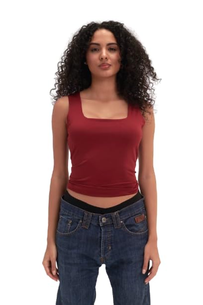 Virmo - Womens Sleeveless Shirt Square Neck Double-layer Tank Top Bt007-brg