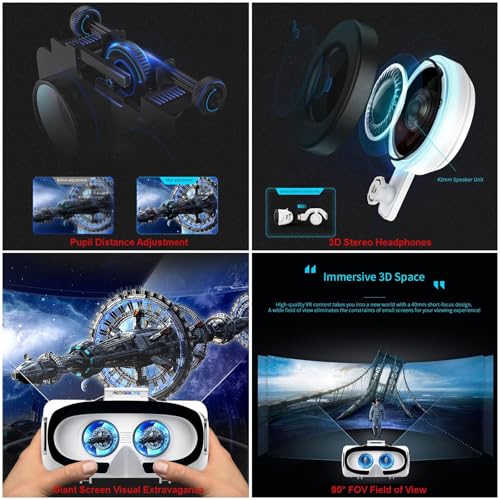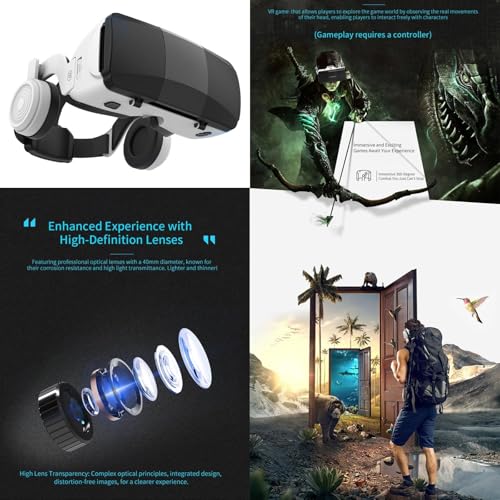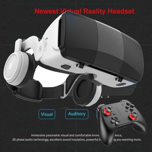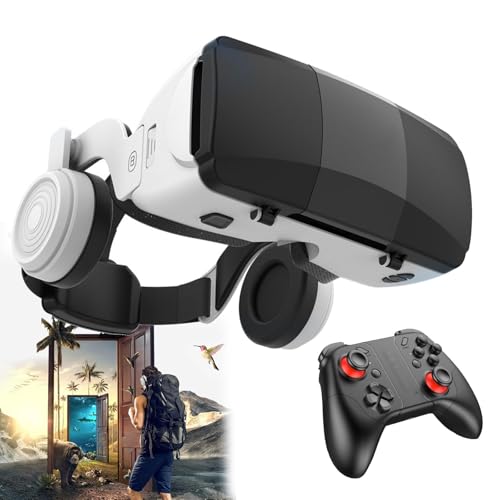 SYOSI - سماعات الواقع الافتراضي للعب الألعاب/الأفلام للبالغين/الأطفال 3D متوافقة مع الموبايلات الذكية التي تعمل بنظام iOS وأندرويد 12 - 20 سم، مجموعة سماعات الواقع الافتراضي مع وحدة تحكم وسماعات رأس