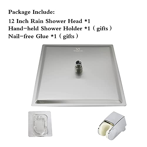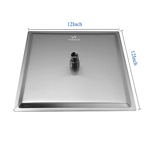 Vishod - رأس دش بنمط مطر عالي الضغط مربع 30 سم مصنوع من الفولاذ المقاوم للصدأ 304 مع النيكل المصقول بتصميم رفيع للغاية بنمط مطر طبيعي