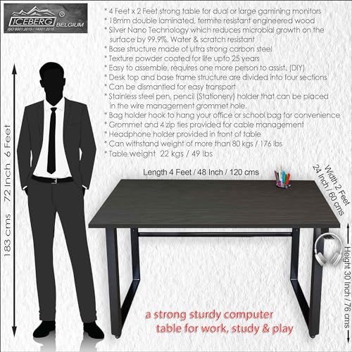 - هذا المكتب المستقبلي الغني بالميزات للألعاب والعمل والدراسة: 1.22 م طول × 60 سم عرض ×76 سم ارتفاع. خشب مصمم بطبقة مزدوجة 18 ملم مع تقنية سيلفر نانو التي تقلل من نمو الميكروبات على السطح بنسبة 99.9%. مقاوم للماء والخدوش: