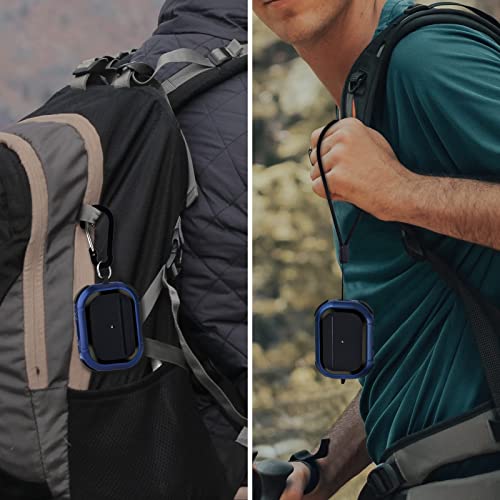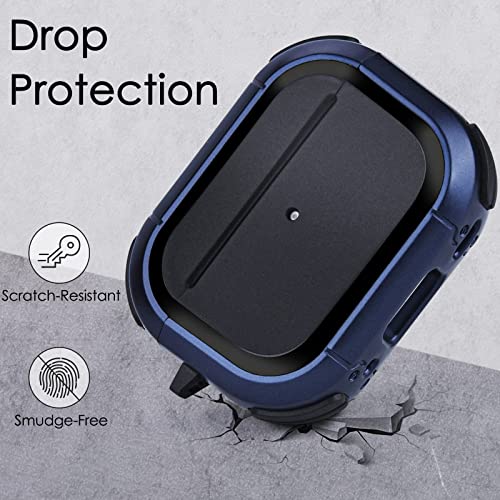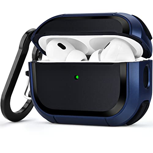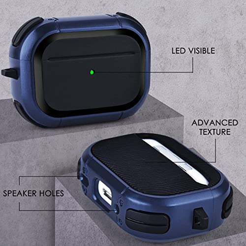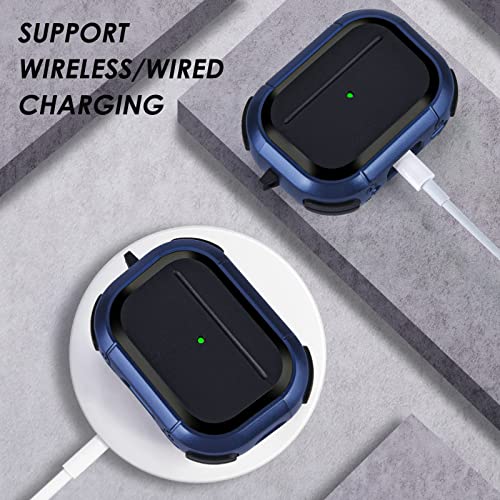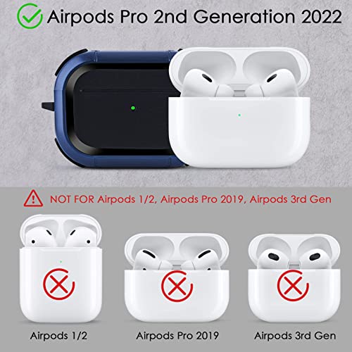 VISOOM - جراب حماية صلب مضاد للصدمات لسماعات ابل ايربودز برو 2 الجيل الثاني من فيسوم مع حلقة تعليق لعلبة شحن 2022 [مصباح LED امامي مرئي] ازرق معدن البولي يوريثين الحراري