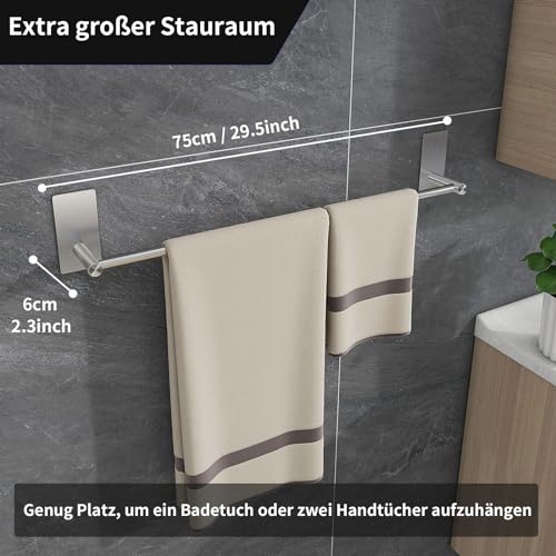 Vista - حامل فوط بدون ثقب ستانلس ستيل ذاتي اللصق قوي للحمام وغرفة النوم والمطبخ من فيستا SUS304، فضي، 75 سم