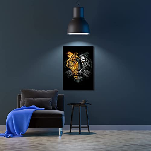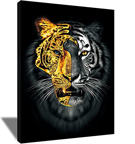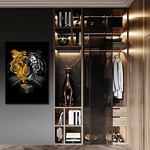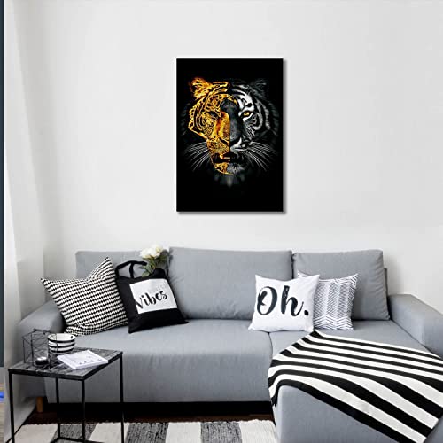 Donahue Art - لوحة فنية جدارية على شكل حيوانات بتصميم قناع ذهبي ونمر من القماش نمور حديثة ديكور حائط منزلي مؤطر وممتد - 40 × 60 سم 16 24 انش .