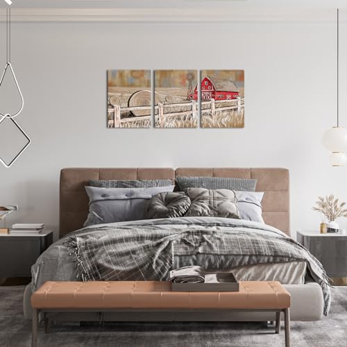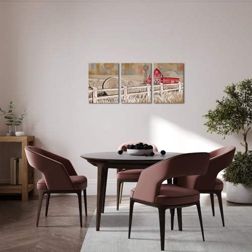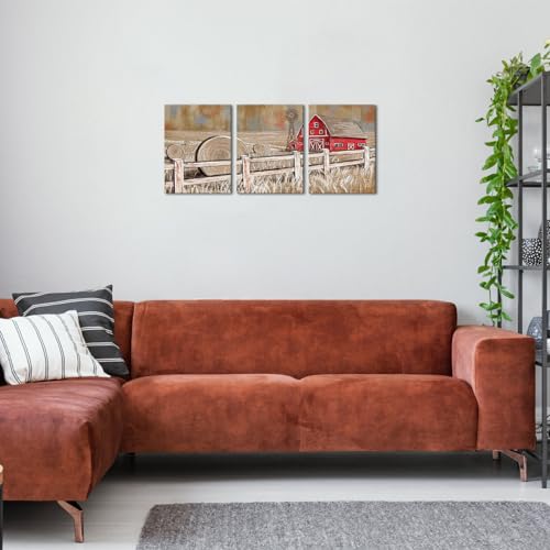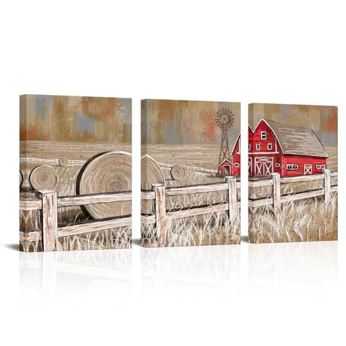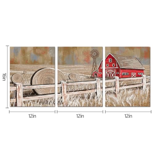 Visual Art Decor - فيجوال ارت ديكور لوحة فنية جدارية بنمط ريفي بتصميم طاحونة هوائية بلون احمر بتصميم ريفي (12 انش × 16 انش × 3 قطع)