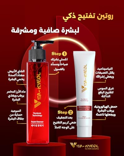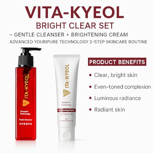 VITA-KYEOL - مجموعة برايت كلير من فيتا كيول - منظف لطيف + كريم تفتيح | تقنية يوري بيور المتقدمة روتين العناية بالبشرة بخطوتين لبشرة نقية ومشرقة ومشرقة ومتساوية اللون ومشرقة