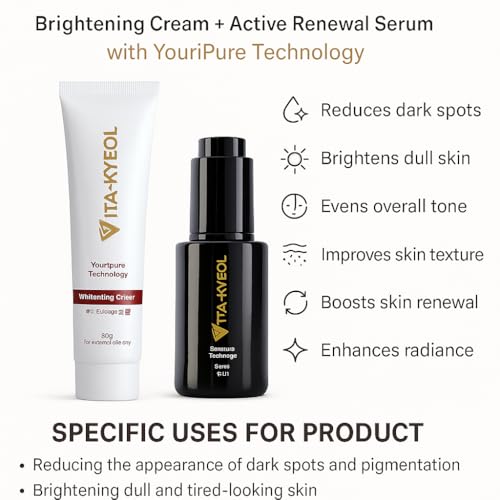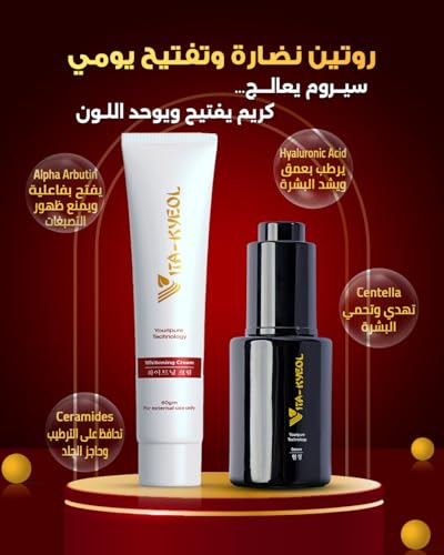 VITA-KYEOL - مجموعة ايفن جلو للوجه من فيتا-كيول - كريم تفتيح + سيروم تجديد نشط بتقنية يوري بيور للبقع الداكنة ولون غير متساوي والعناية بالبشرة وتعزيز إشراقة البشرة وملمس ناعم