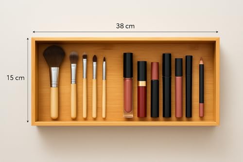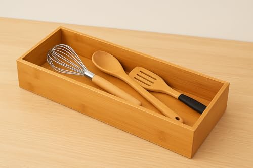 VITA PERFETTA - منظم ادوات المائدة من الخيزران الطبيعي من فيتا بيرفيتا - منظم درج المطبخ - متين وصديق للبيئة (38 × 15 × 7 سم)