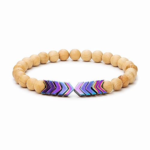 Vitality Extracts - سوار خرز باحجار كريستال مطرز باسهام وموزع زيوت عطرية مصنوع يدويا لتخفيف التوتر والاستشفاء والتامل بالعلاج العطري والشاكرا من فيتاليتي اكستراكتس خشب- الوان رينبو خشب الهيماتايت للبالغين الجنسين