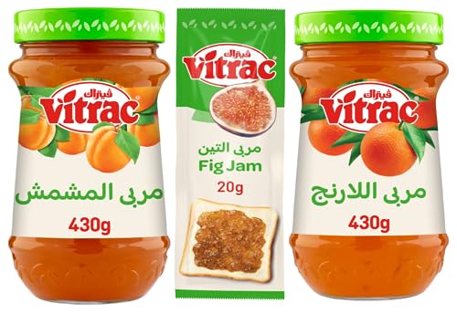 Vitrac - مربى فيتراك - حزمة النكهات (مشمش 430 جرام - برتقال مر 430 جرام - عبوة من 24 كيس مربى التين 20 جرام)