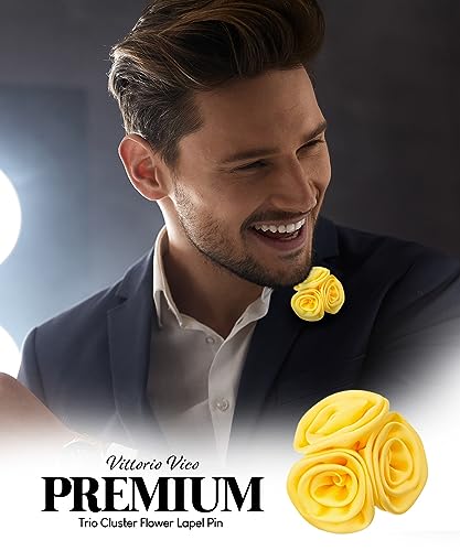 Vittorio Vico - دبوس طية صدر بتصميم ثلاثي فاخر على شكل زهرة عنقودية - عروة رسمية للرجال، دبوس بروش على شكل زهرة