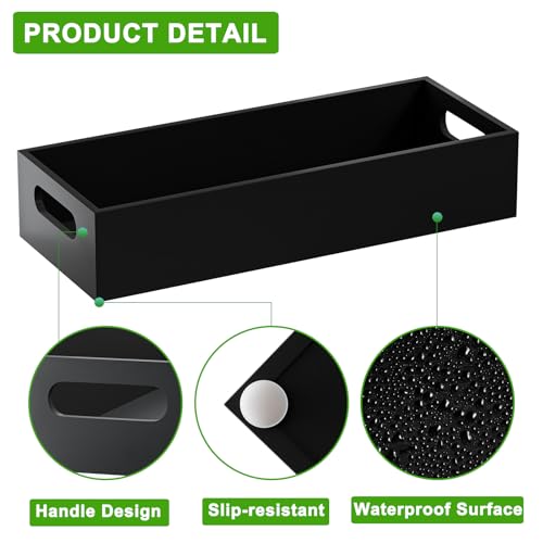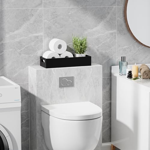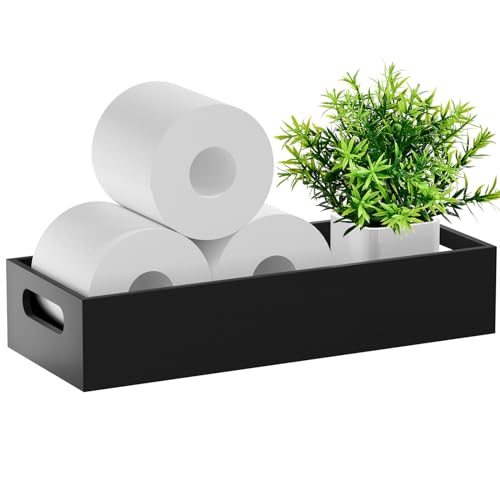 VITVITI - حامل تخزين ورق التواليت من البامبو بتصميم صينية مع مقبض، سلة منظم حامل مناديل التواليت لخزان التواليت/طاولة المطبخ، طبيعي، أسود