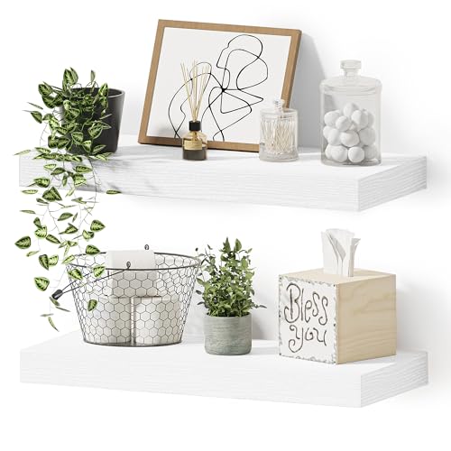 - أرفف خشبية عائمة أعمق وأكثر سمكًا - يبلغ قياس كل رف حائط 40.64 سم عرض × 17.02 سم عمق × 3.51 سم ارتفاع. تُضفي أرففنا لديكور الحائط مساحات تخزين متنوعة لتنظيم الأغراض الصغيرة على سطح مكتبك أو طاولتك. وتندمج بسلاسة مع باقي الديكورات الأخرى وتوفر طريقة أنيقة لتنظيم وعرض الأغراض. يوصى بها بشدة للنباتات العصارية والأغراض الصغيرة والمقتنيات والتماثيل والجوائز أو أي شيء ترغب في عرضه.