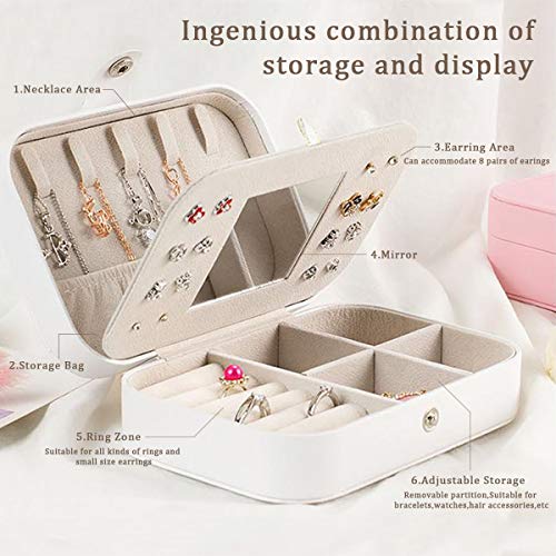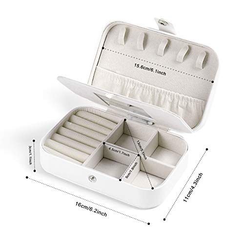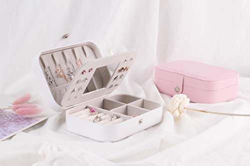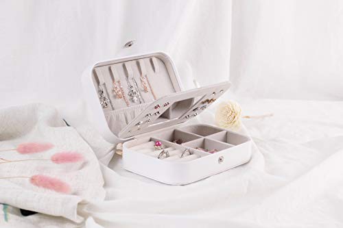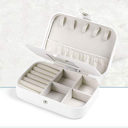 Generic - علب مجوهرات مزدوج الطبقات مع مراة شنطة تخزين لامعة للسفر من الجلد الصناعي للسلاسل والحلقان والخواتم فيفيد تري لون ابيض